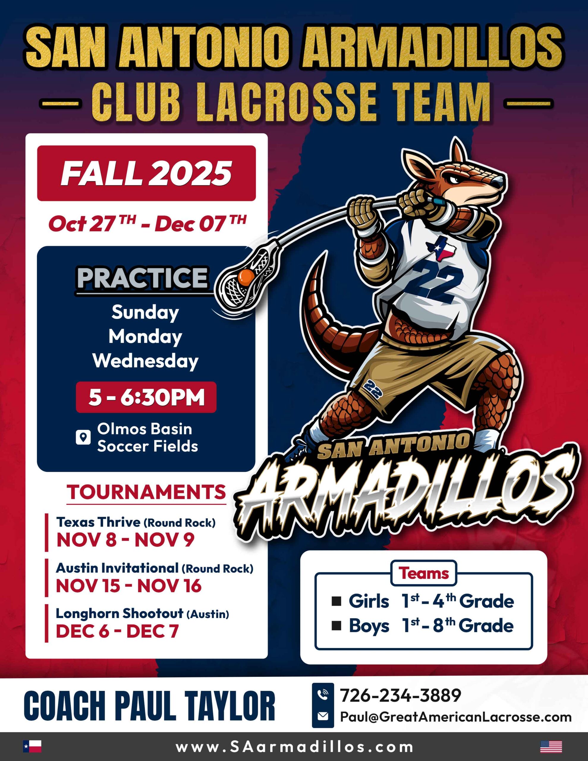 See all of our team info here: www.SAArmadillos.com